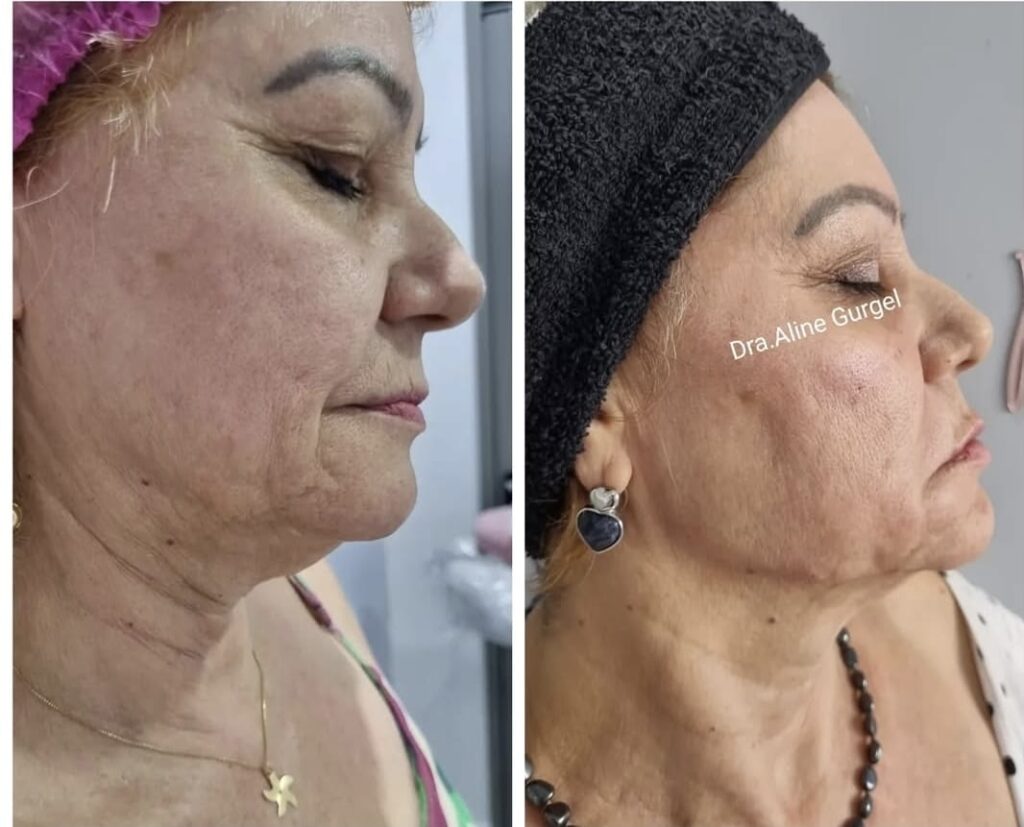 Sou a Soraia tenho 50 anos e comecei minha harmonização facial a 1 ano atrás a cuidar do meu rosto com a Dra. Aline e hoje tenho um rosto mais harmônico e sem flacidez.